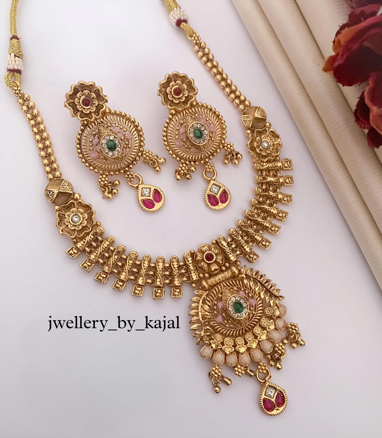 Royal Bridal Necklaces Set: High-Gold Brass with a 22k Golden Shine