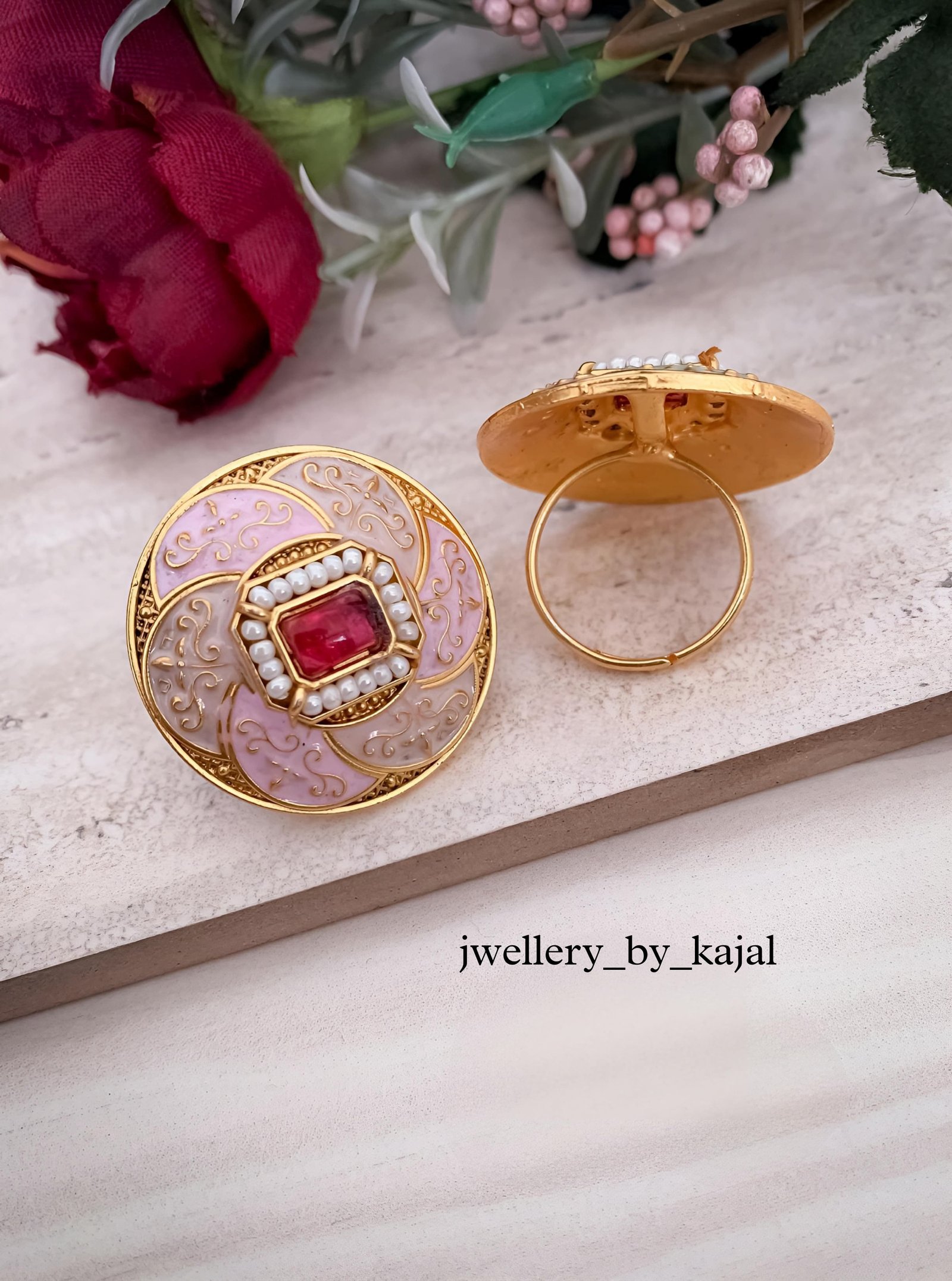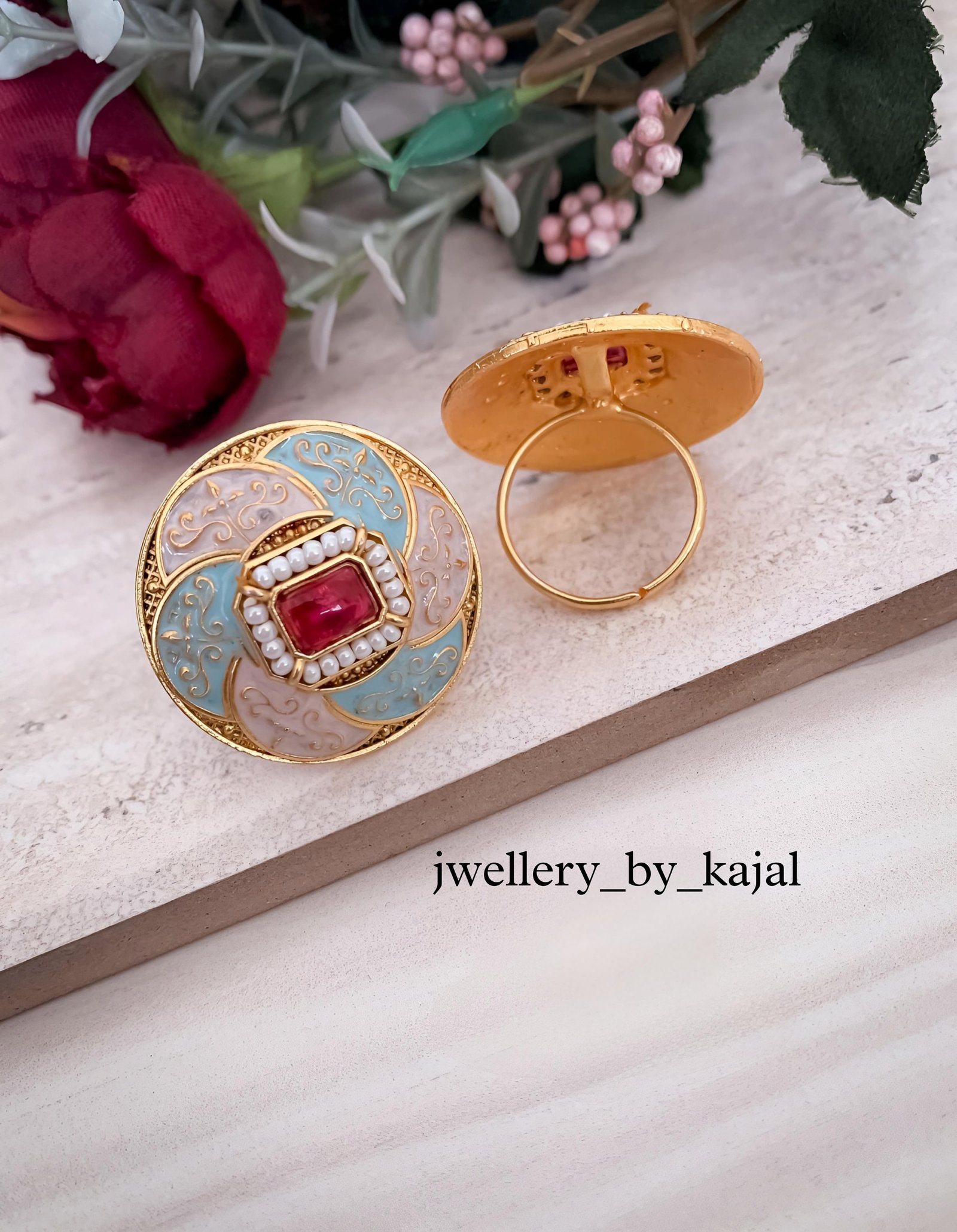 Royal Charm: Brass High Gold Meena Work Adjustable Rings