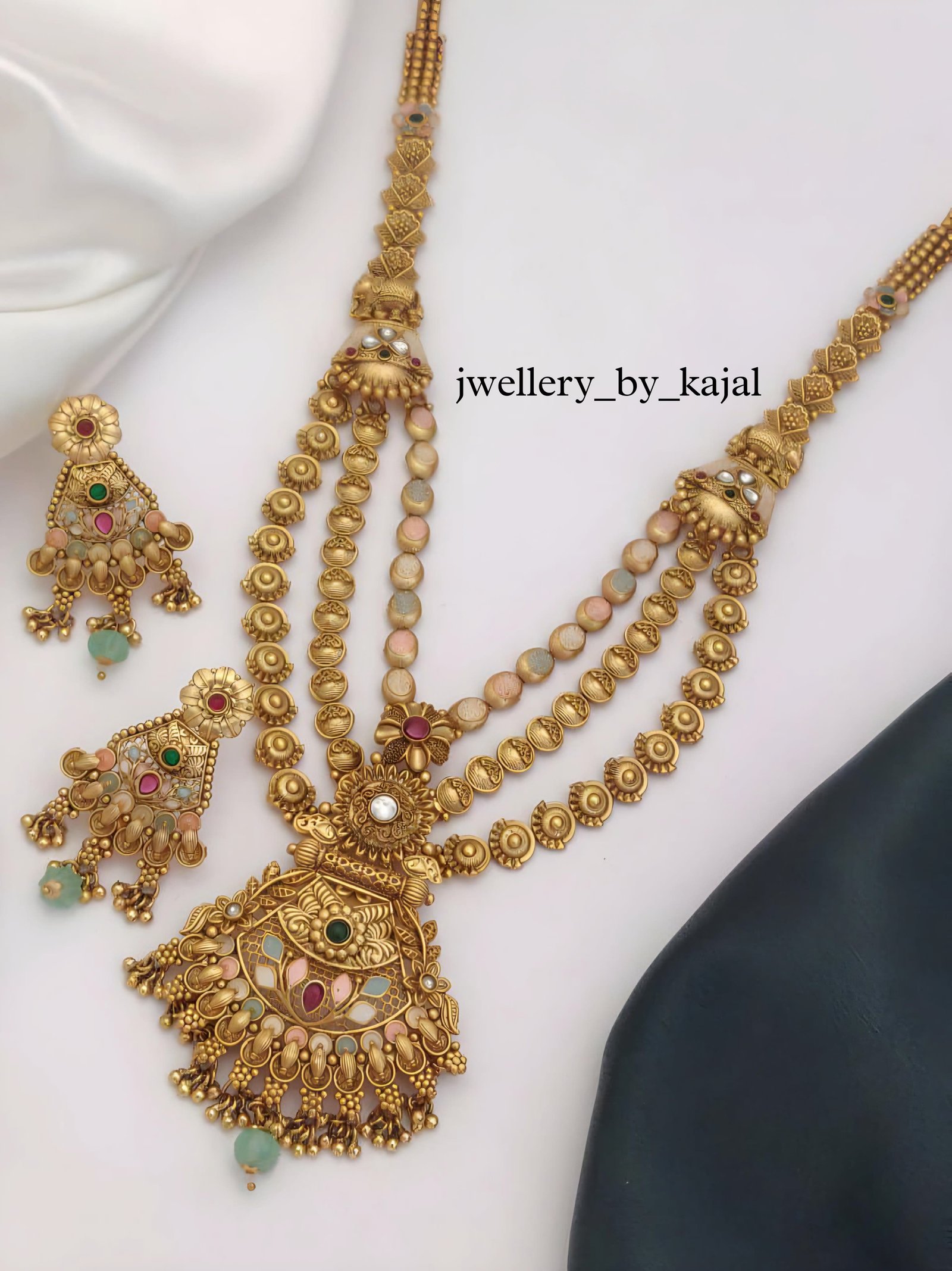 Royal Wedding Rani Haar 3-Layer Necklace Set – 22K Gold Look