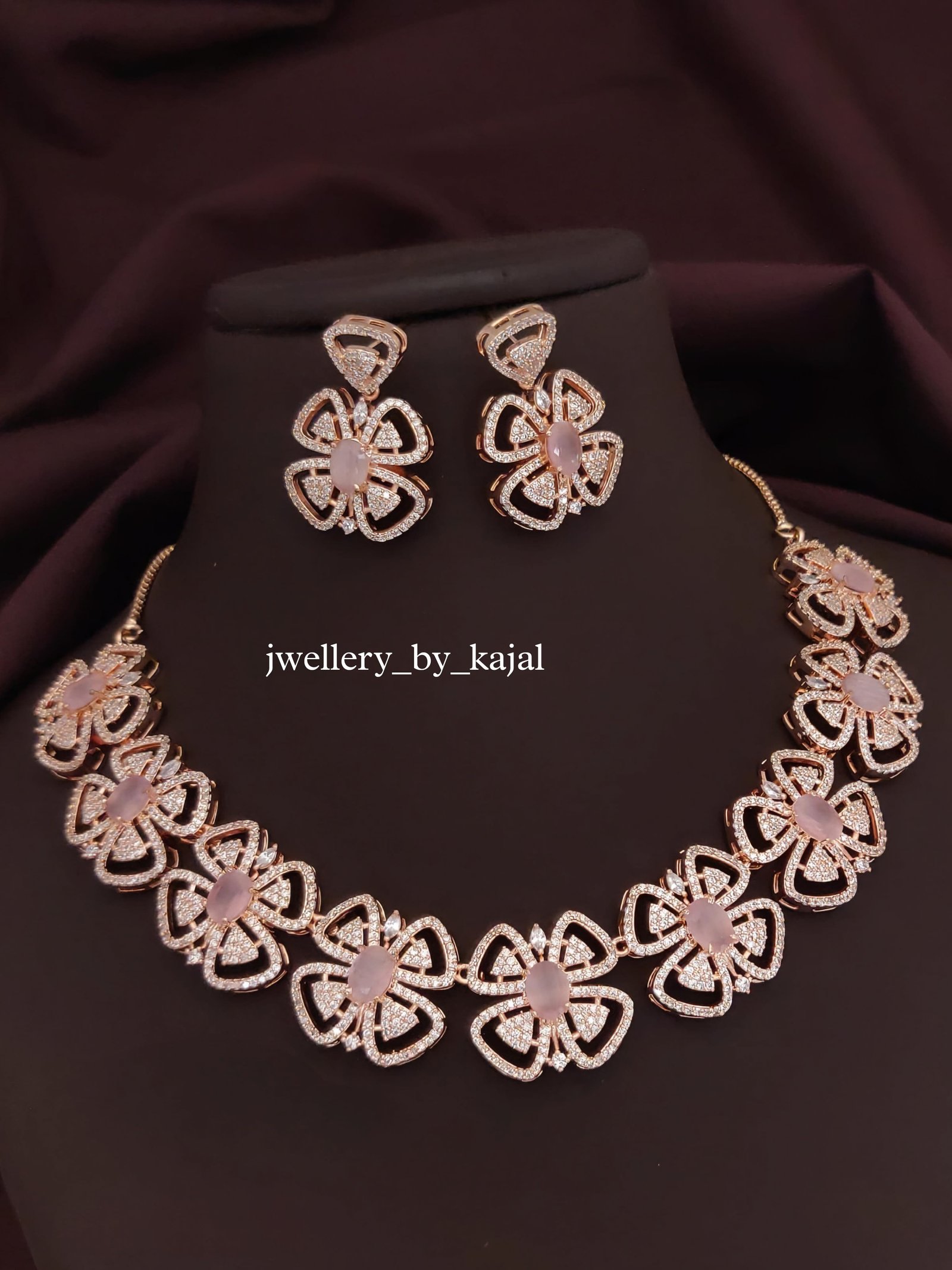 Sanjana Rose Gold Diamond Necklace & Drops Set jwellery by kajal