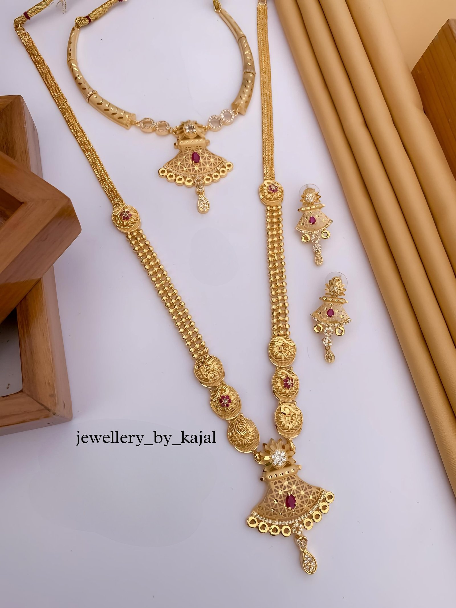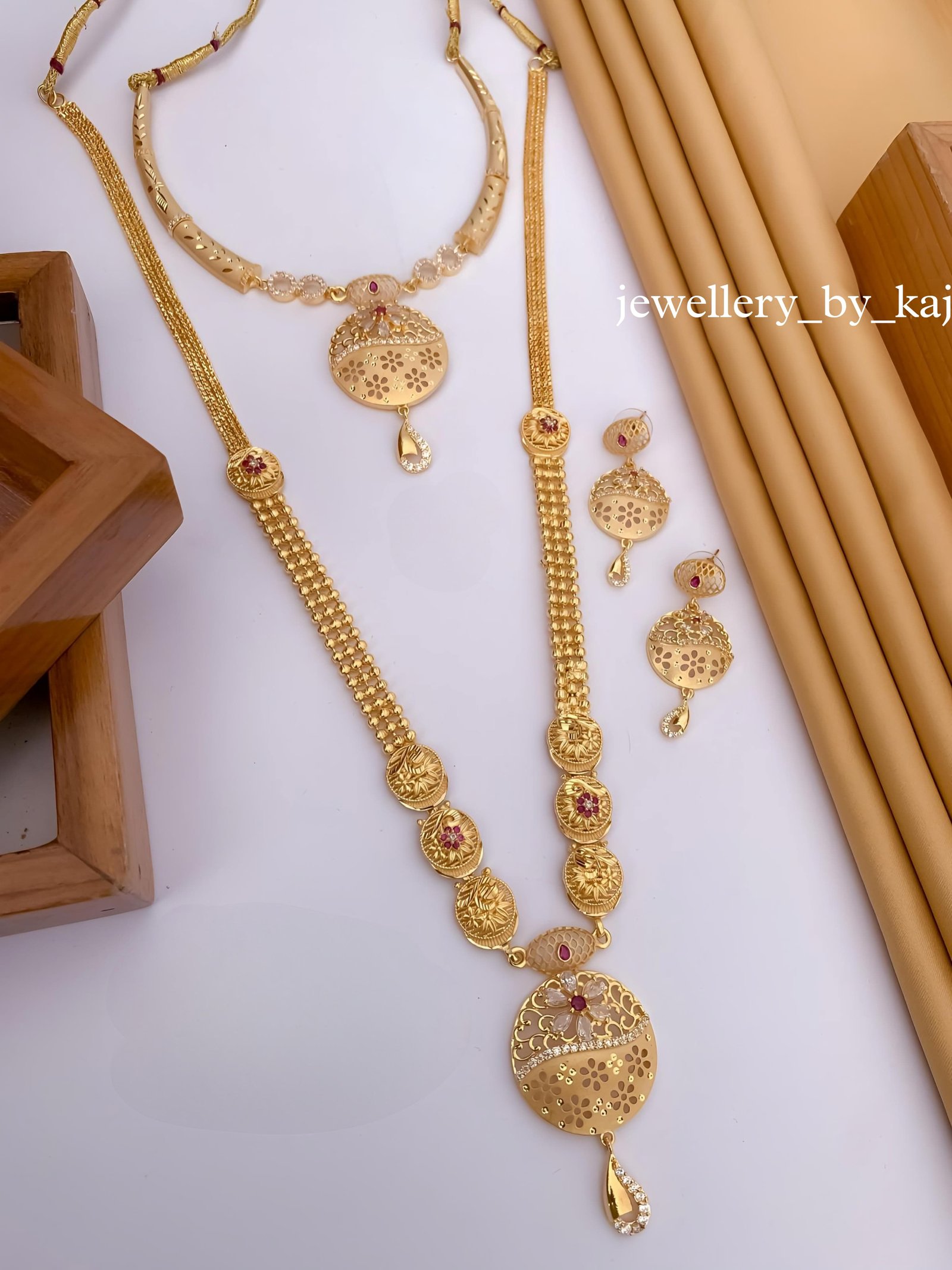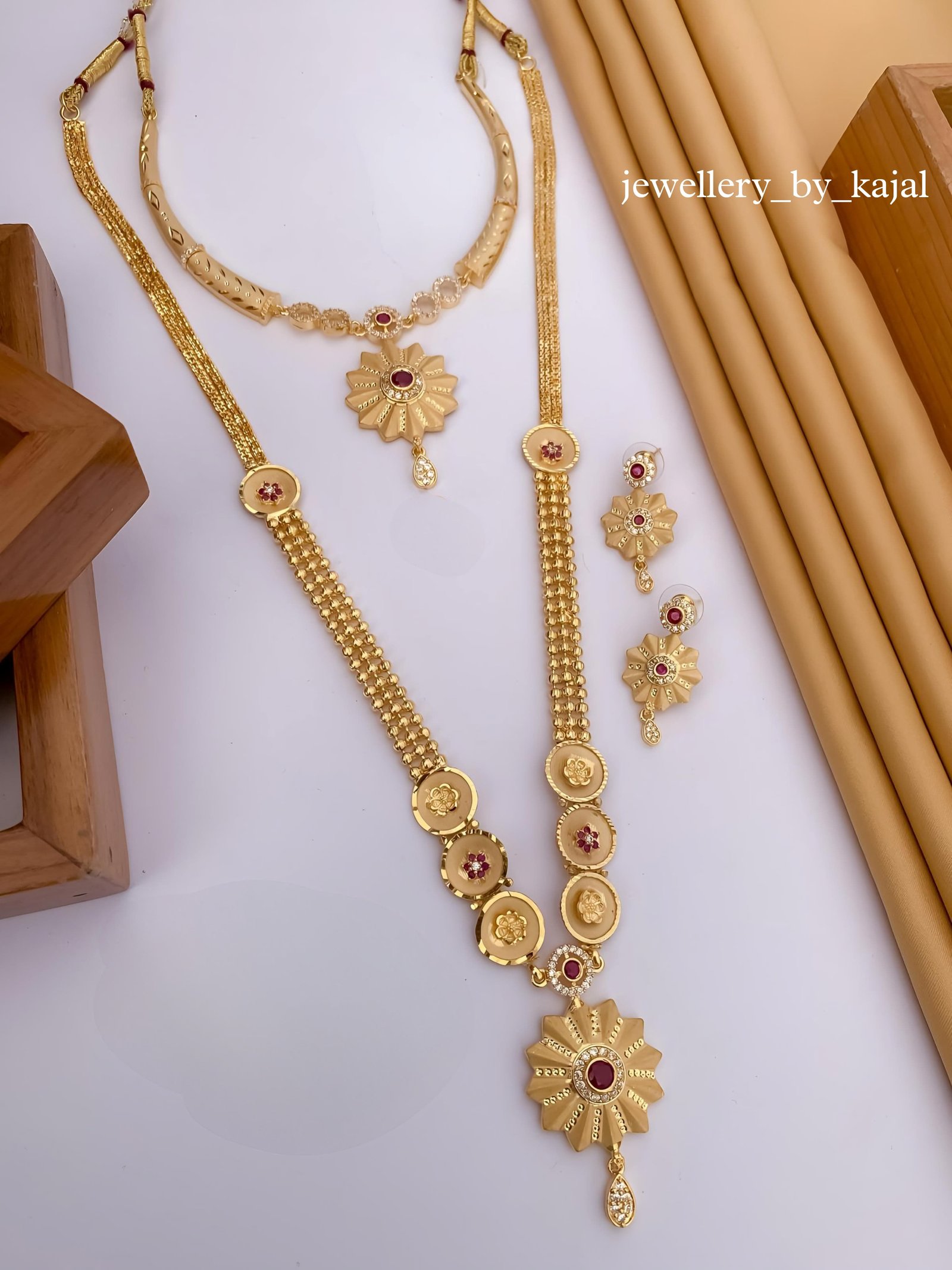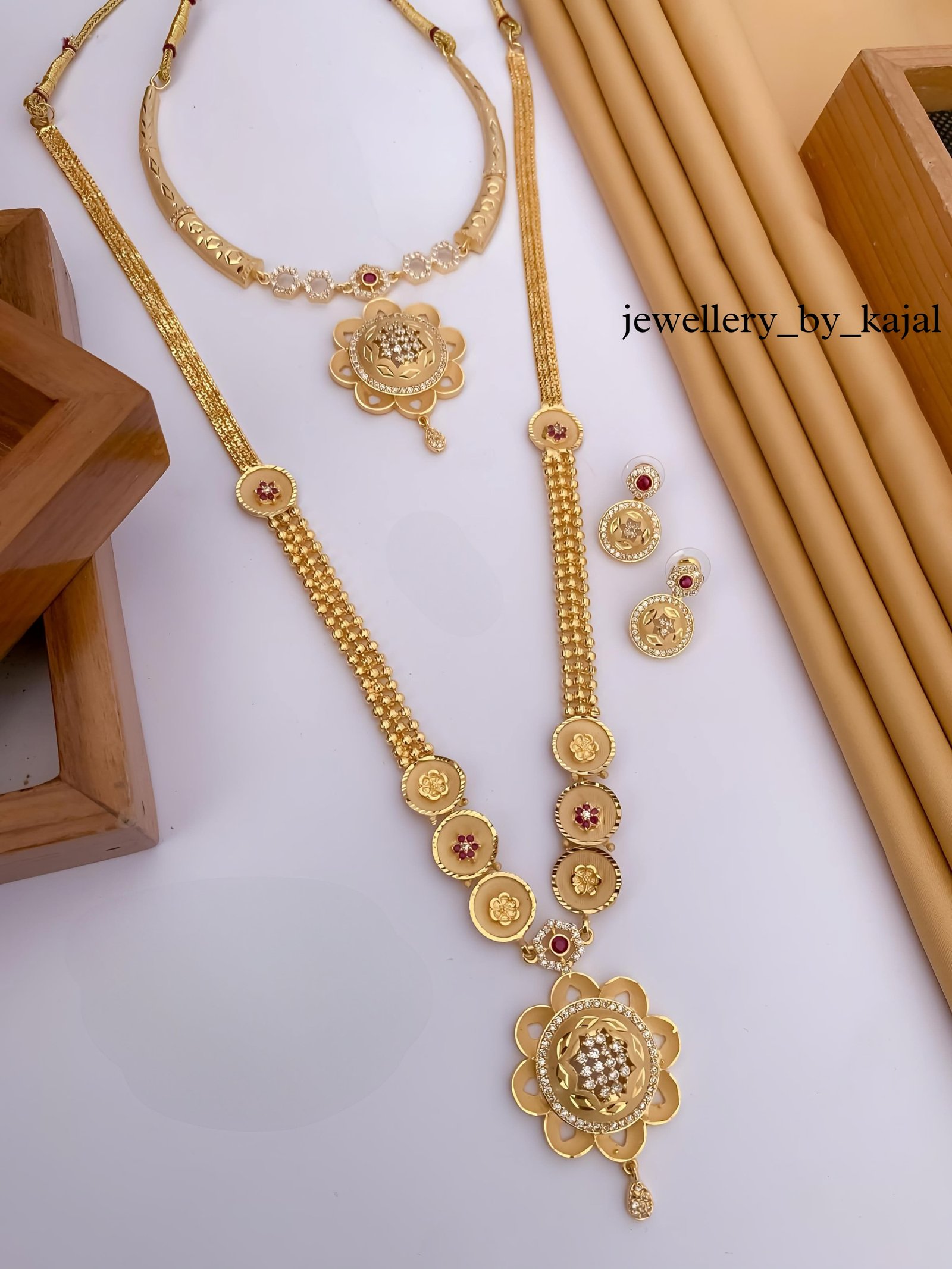 Shahi Swarna Combo Set Long Necklace aur Earrings ke Saath jwellery by kajal