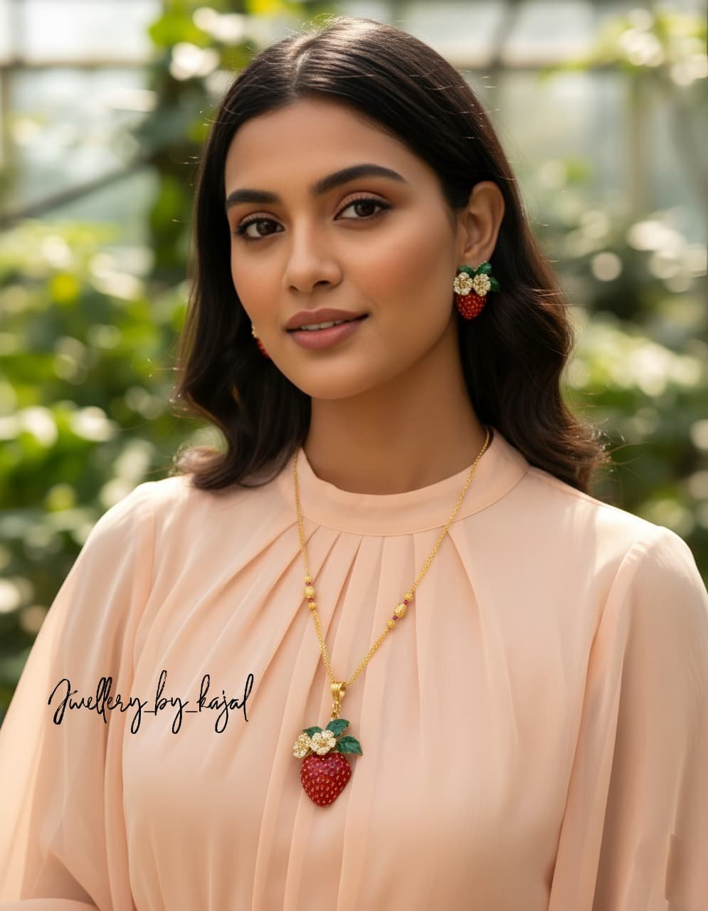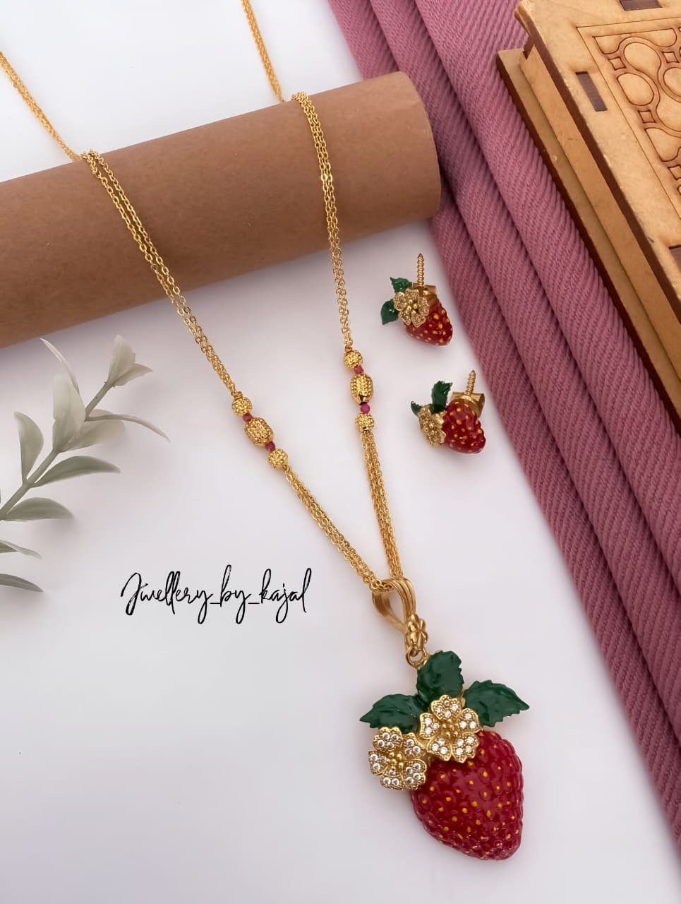 Strawberry Look Pendant Set with Matching Earrings