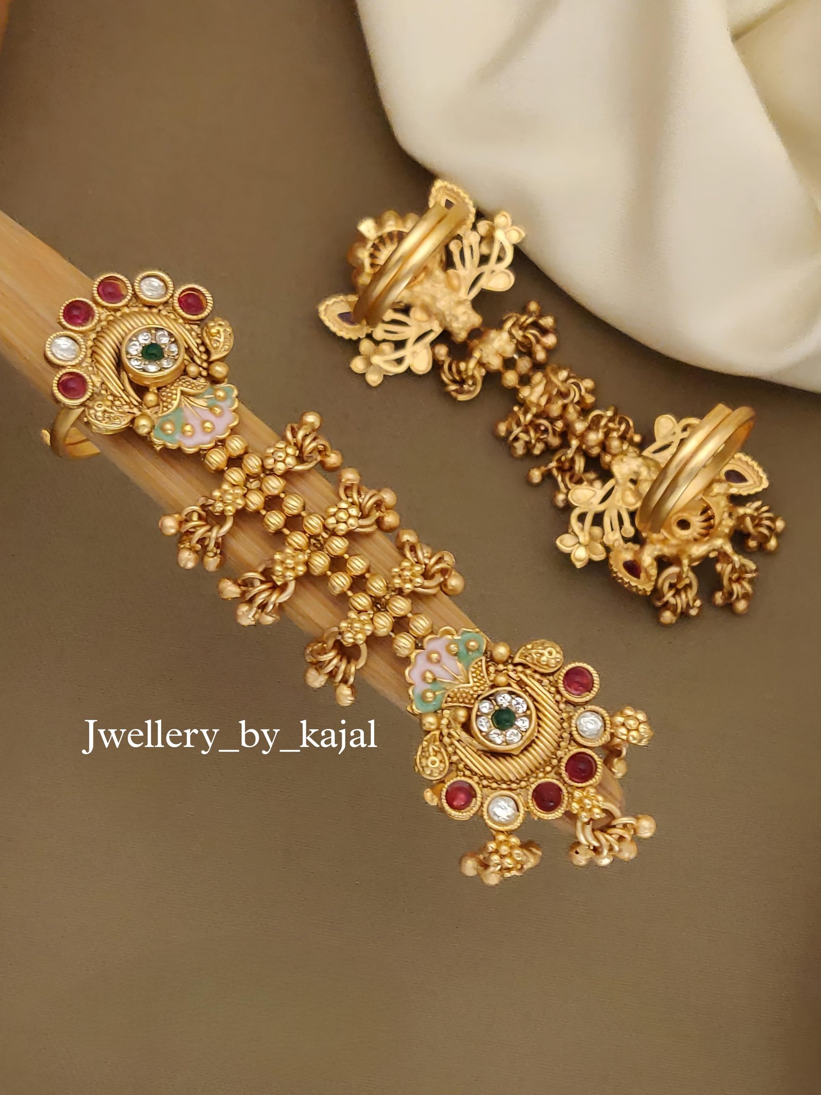 Suhasini Bridal Long Ring – 22K Gold Look with Intricate Design