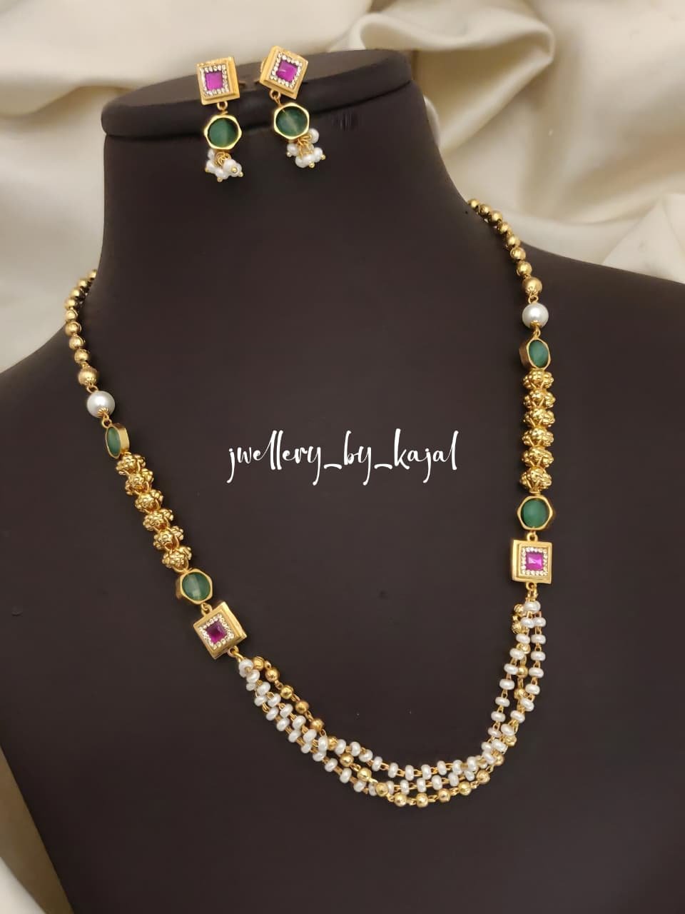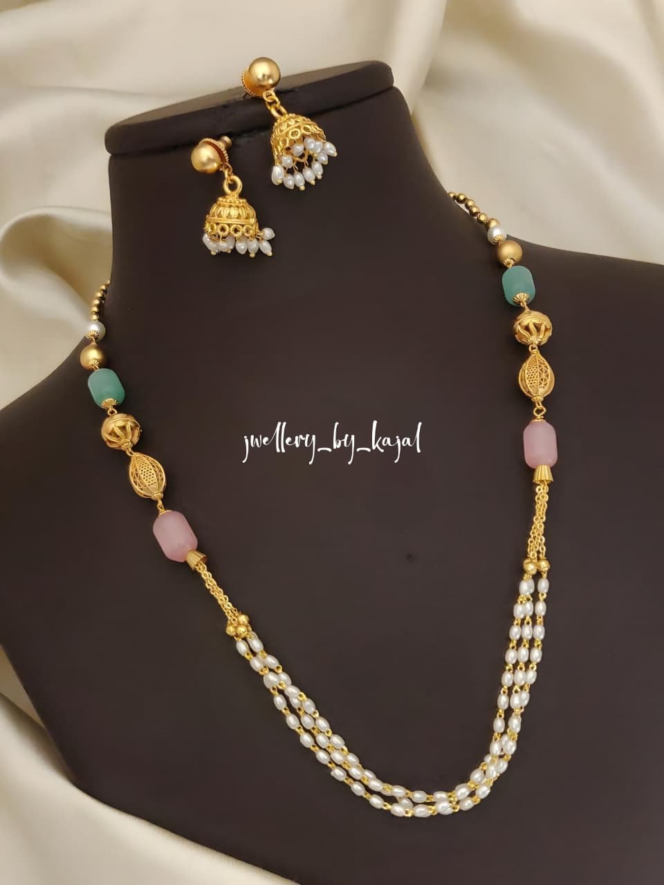 Tara Golden Pearl Layered Chain with Earrings