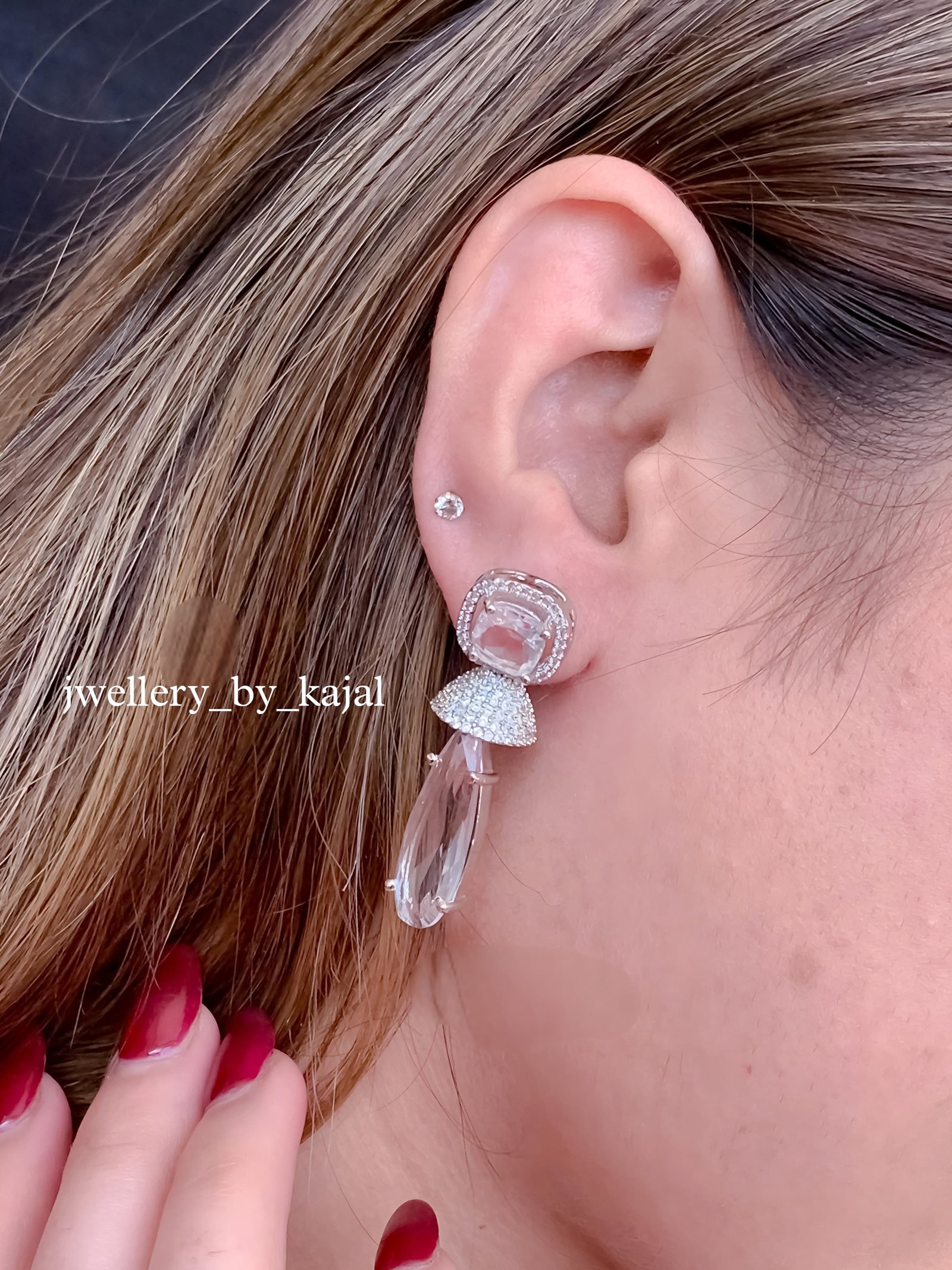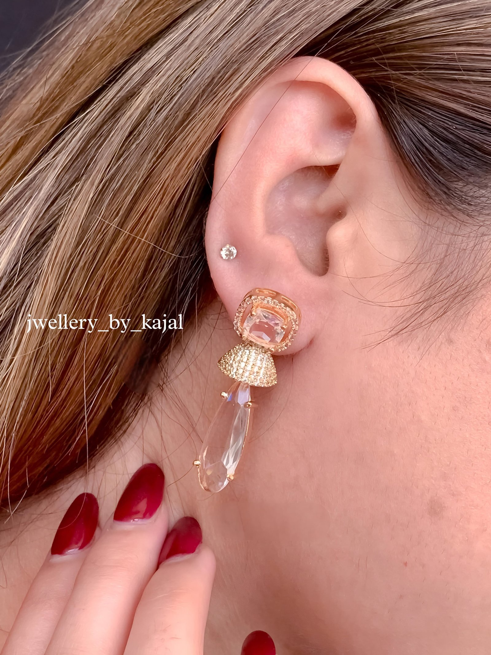 ✨ 24K Gold Look :-Timeless Rose Gold Earrings – American Diamond & Beaded Drop Design for Ultimate Glam
