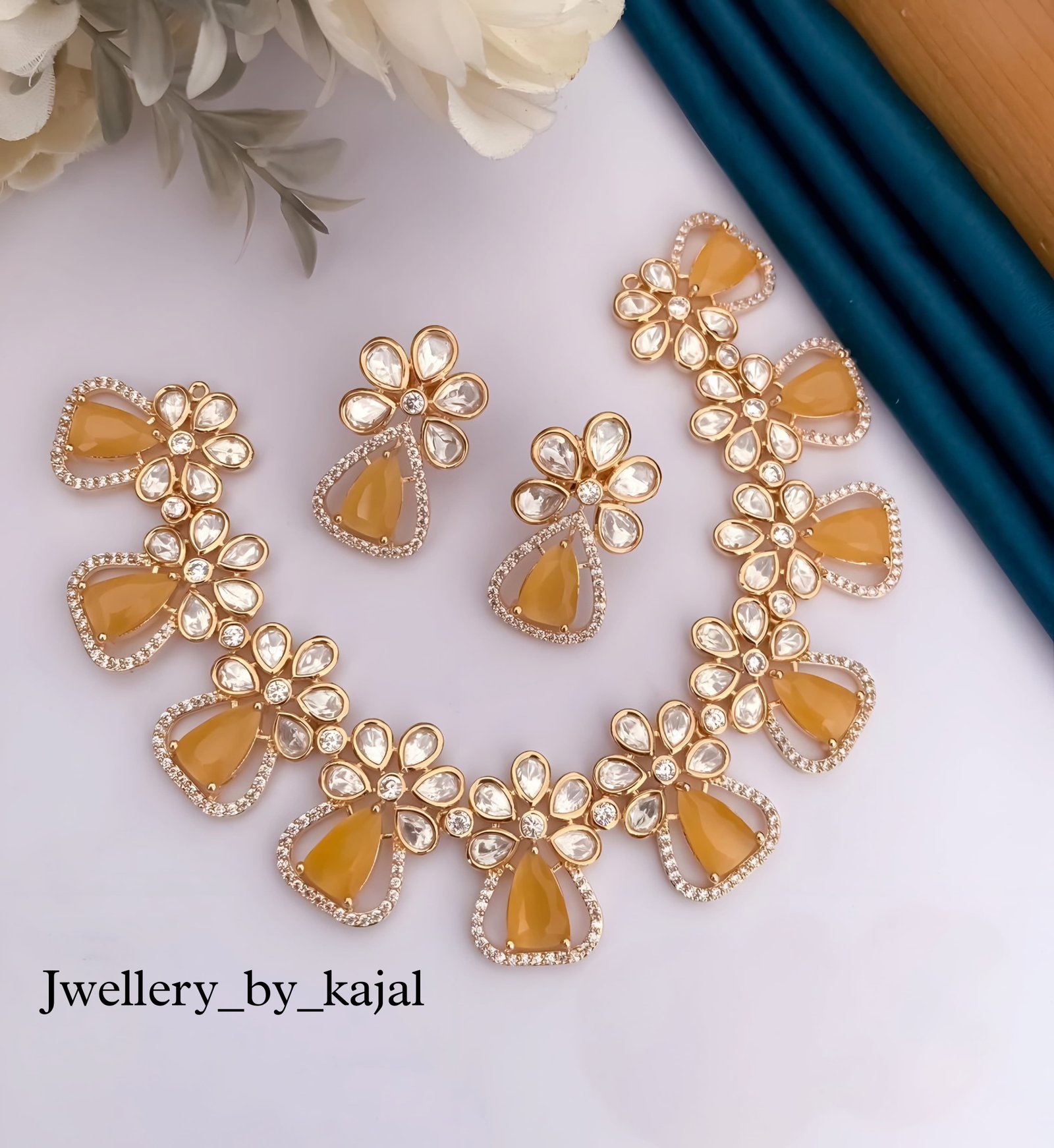 ✨ 24K Gold Look :-Voylla Exclusive: Royal Kundan Necklace Set with Matching Earrings